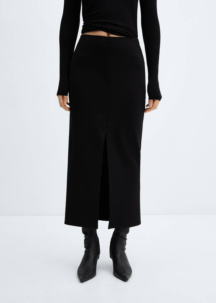 Punta di Roma knit fabric. Straight design. Midi design. High waist. Elasticated waistband. No Fastening. Front opening. Available Plus. Office looks