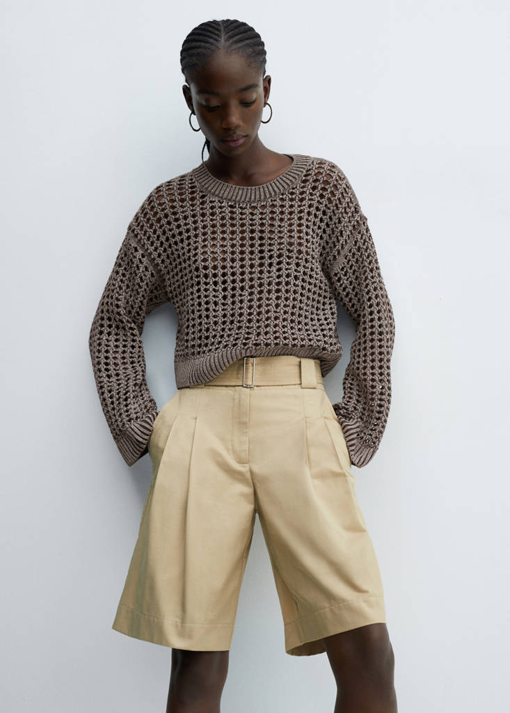 Round-neck openwork sweater
