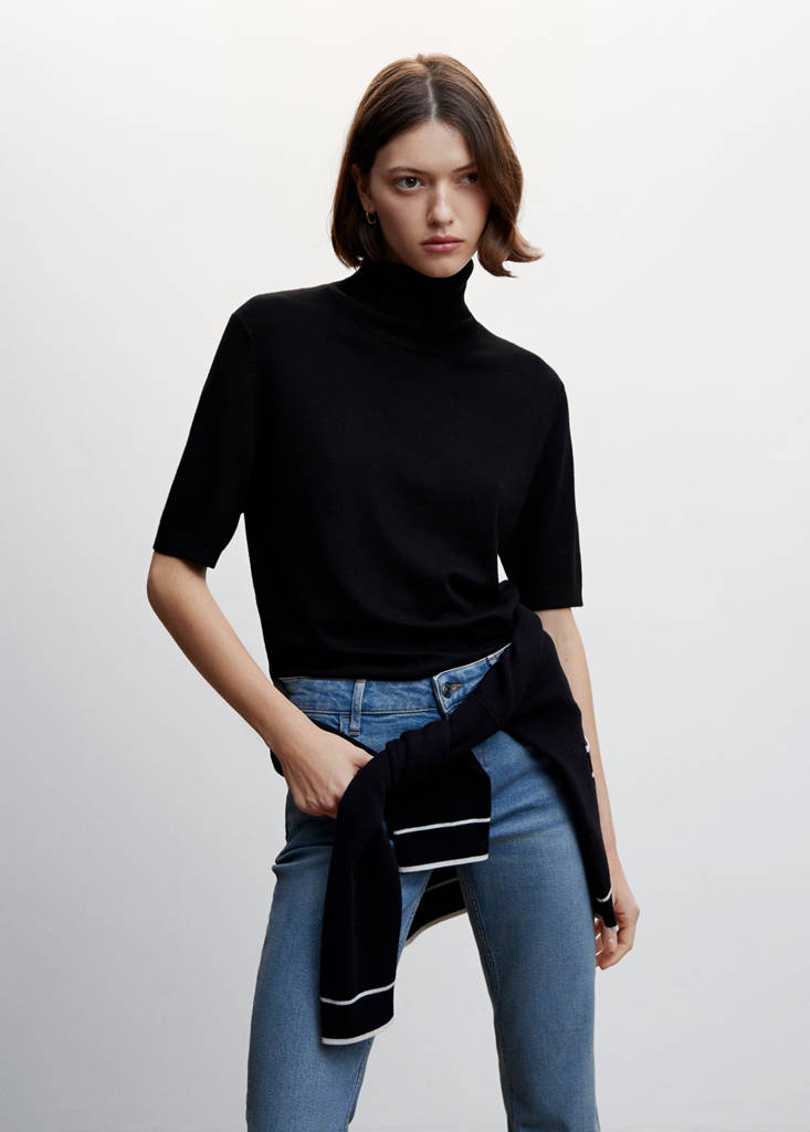 Turtleneck knitted sweaterCurrent price [US$ 35.99 ]US$ 35.99Select a colourBlackSelect your sizeXXSXSSMLXLXXL1XL2XL3XL4XLDimensionsAdd to WishlistSee lookFree delivery to storeFine knit fabric. Straight design. Rolled neck. Short sleeve. Cable knit finish. Plus Size AvailableDetails, composition and careStore availability