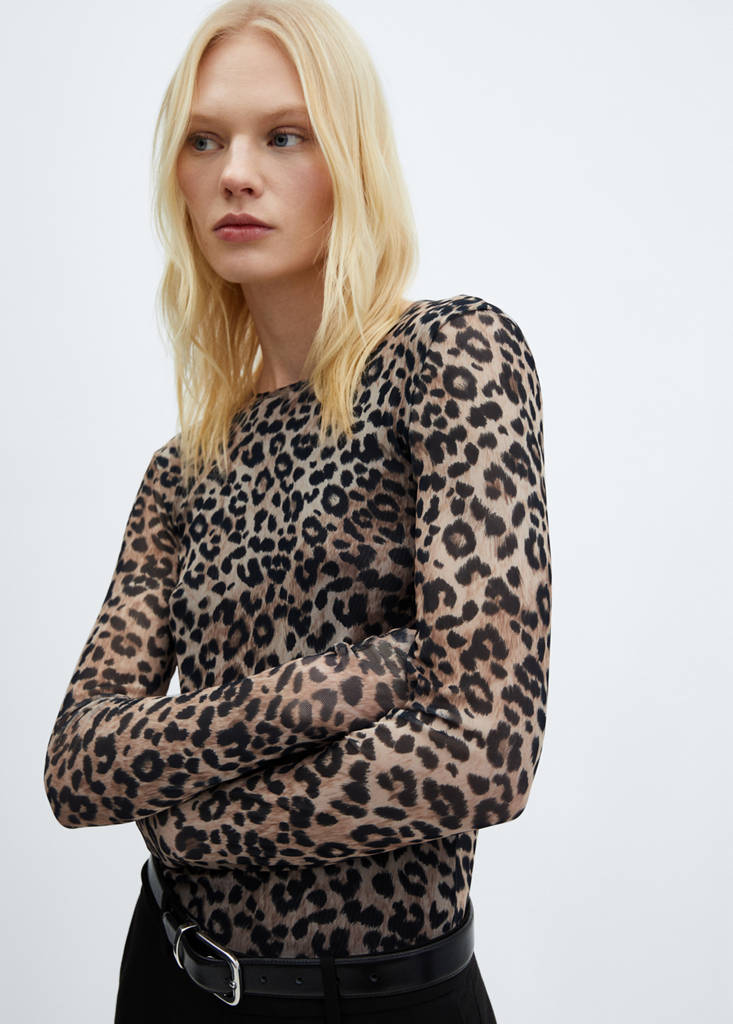 Printed mesh t-shirtCurrent price [US$ 25.99 ]US$ 25.99Select a colourBrownThe model is wearing size S and is 179cm tall.Select your sizeSMLDimensionsAdd to WishlistSee lookFree delivery to storeFluid fabric. Mesh fabric. Straight design. Animal print. Leopard print. Round neck. Long sleeves. No Fastening. Inner liningDetails, composition and careStore availability