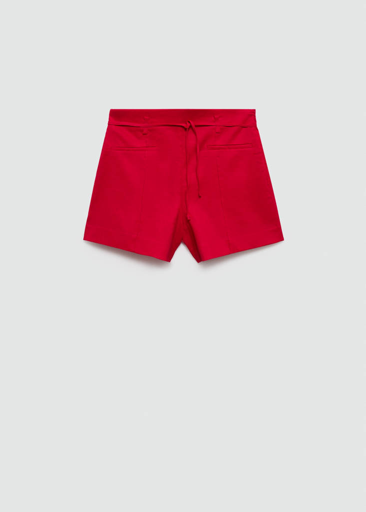 Linen and cotton blend fabric. Mid-rise. Short design. Skinny fit. Two front welt pockets. Belt loops. Invisible lateral zip fastening. Tie fastening