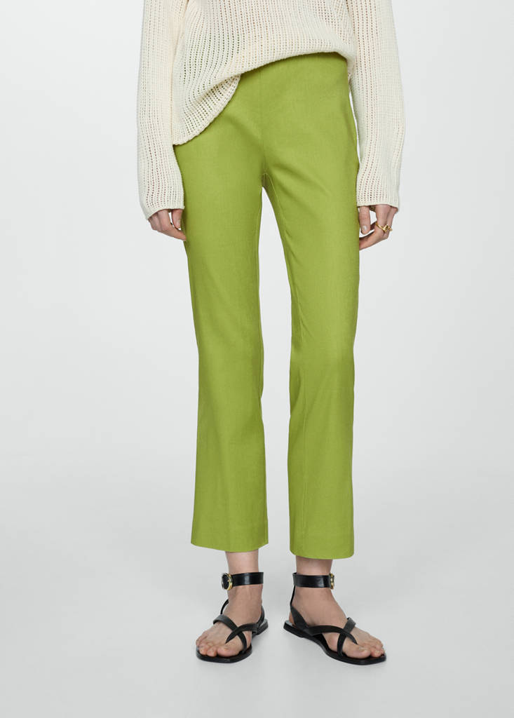 Cotton and linen blend fabric. Crop design. Bell design. Flare design. Elasticated waistband