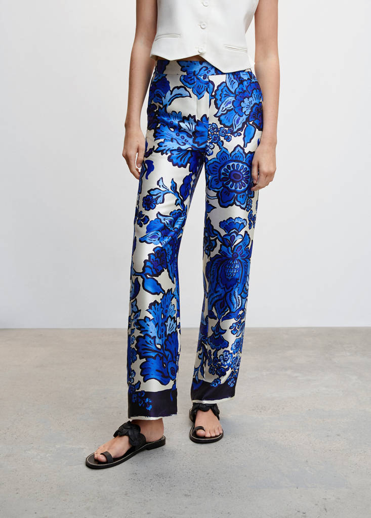 Floral satin trousers