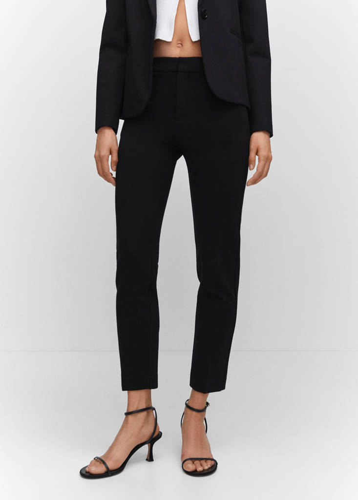 Punta di Roma knit fabric. Standard design. Straight design. Mid-rise. Belt loops. Two side pockets. Two welt pockets at the back. Total look. Office looks