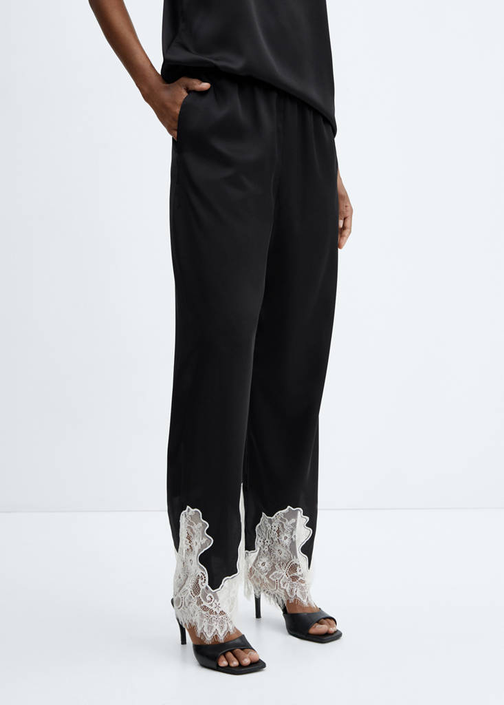 Fluid fabric. Wide-leg design. High waist. Two side pockets. No Fastening. Elasticated waistband. Lace finish. Total look