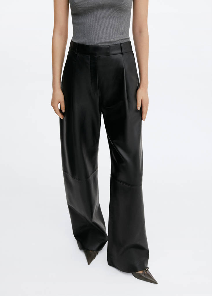 100% sheepskin. Long design. Wide-leg design. High waist. Two side pockets. Two welt pockets at the back. Concealed button, hook and zip fastening. Belt loops. Inner lining. Office looks. Selection Collection