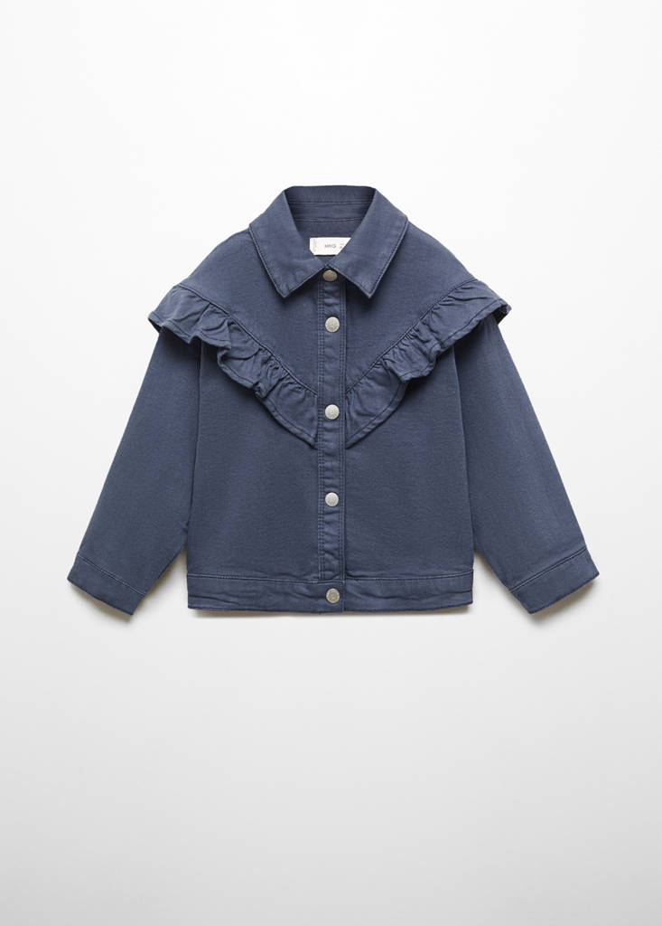 Tissu en coton style denim cowboy. Coupe droite. Design à volants. Col chemise. Manche longue. Fermeture avant. Fermeture par boutons-pression. Cet article est également disponible dans la collection Kids Girl