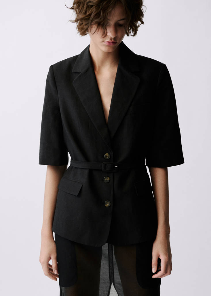 Blazer costume lin mélangé ceinture