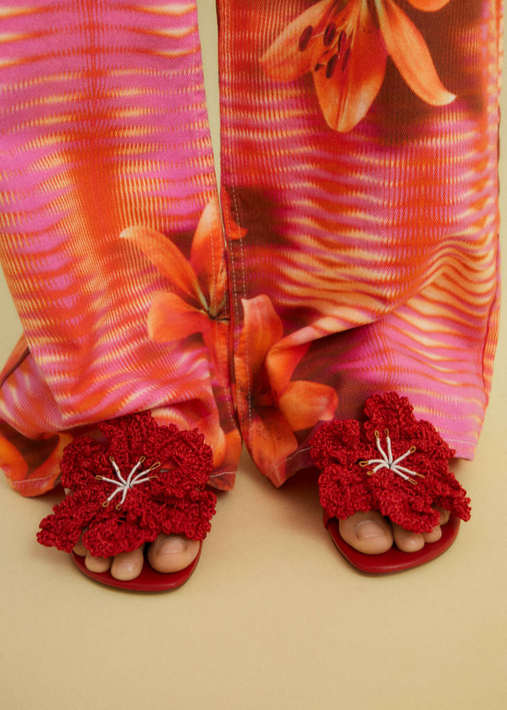 100 % cuir bovin. Détail en crochet. À bride arrière. Ouverture à l'avant. Talon kitten. Sans fermeture. Détail fleur. Le talon mesure 4 cm