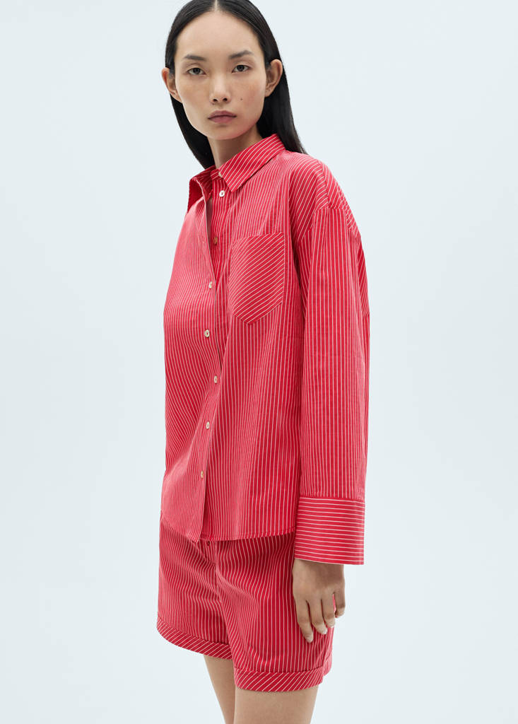 Tissu en mélange de coton. Tissu structuré. Coupe droite. Coupe standard. Col chemise. Manche longue. Poignets boutonnés. Une poche plaquée à l'avant. Fermeture à boutons sur le devant