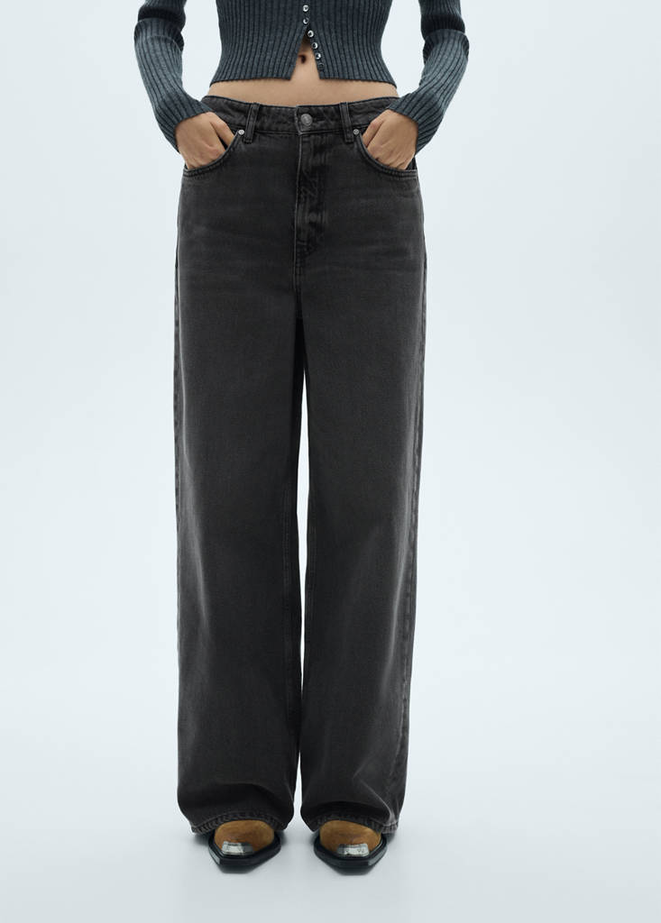 Tissu en coton style denim cowboy. Design long. Coupe loose. Design wideleg. Taille basse. Passants de ceinture. Cinq poches. Fermeture éclair et bouton. Total look. Longueur intérieure 77 cm.