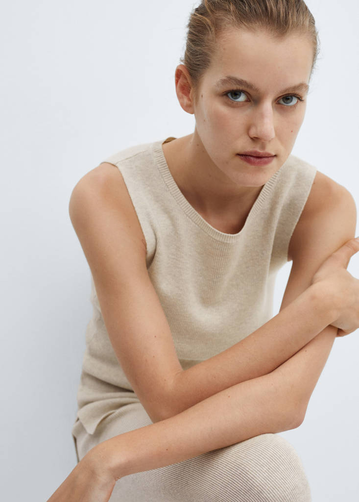 Tissu mélange de coton et lin. Maille. Coupe droite. Col rond. Sans manches. Sans fermeture. Total look