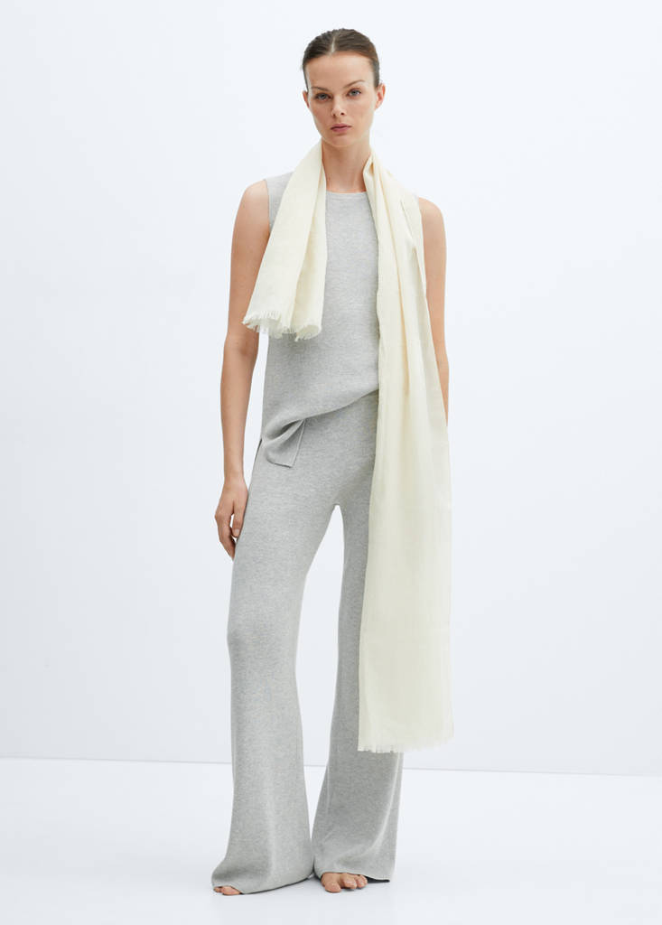 Tissu mélange de coton et lin. Maille. Coupe droite. Col rond. Sans manches. Sans fermeture. Total look