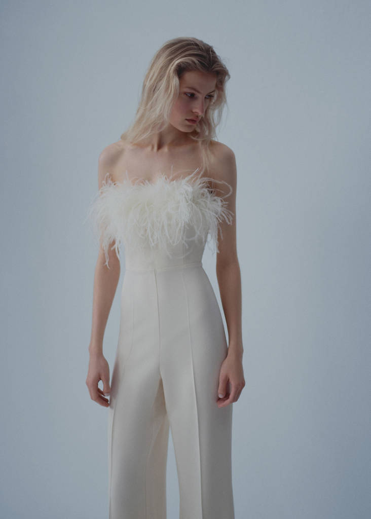 Le look qui deviendra l'alternative parfaite : sa couleur blanche, son haut bustier à plumes et sa coupe wideleg en font un succès assuré. Coupe droite. Design long. Bandeau. Sans manches. Fermeture éclair au dos. Détail de plumes. Pinces. Tissus fabriqués en Italie. Fabriqué au Maroc. Les articles de la collection CAPSULE peuvent être échangés ou retournés dans un délai de 14 jours à compter de la date d’expédition. Ce vêtement appartient à notre collection événement, conçue pour faire de vous l'invitée parfaite à toute fête, mariage ou cérémonie.