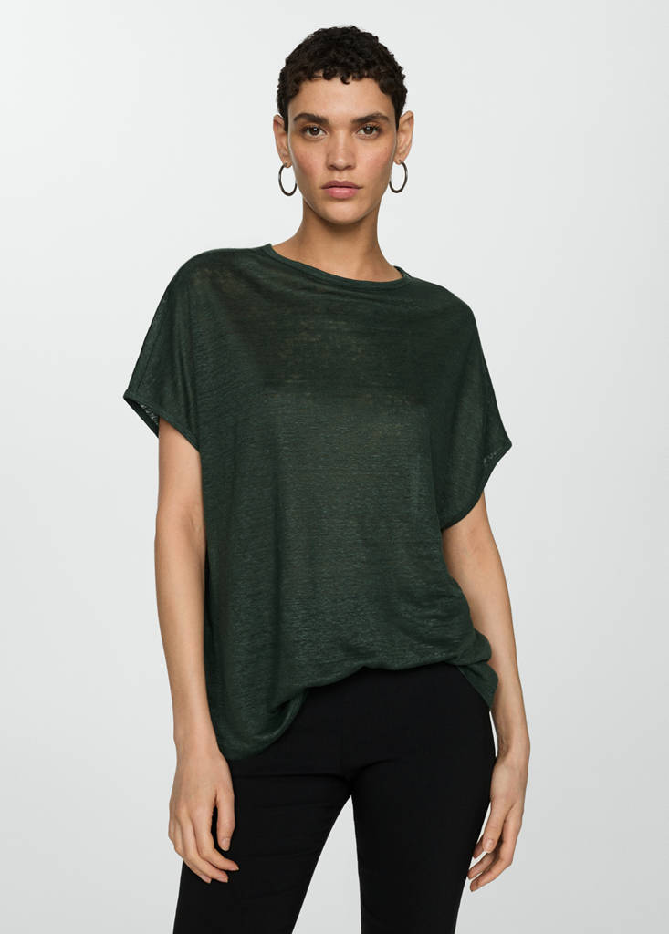 T-shirt lin manches courtesPrix actuel [US$ 39,99 ]US$ 39,99Choisissez une couleurVertTaille grand - Prenez une taille de moins que d'habitudeChoisissez votre tailleXSSMLXLAjouter aux FavorisVoir le lookLivraison gratuite en boutiqueTissu 100 % lin. Coupe droite. Col rond. Manche courteDétails, composition et entretienDisponibilité en boutique