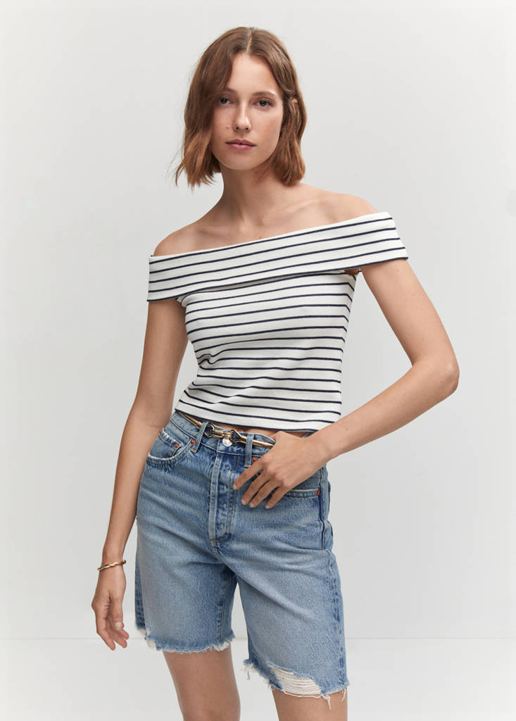 Top épaules dénudéesPrix actuel [US$ 29,99 ]US$ 29,99Choisissez une couleurBlanc casséLe mannequin porte la taille S et mesure 180cm.Choisissez votre tailleXSSMLXLMesuresAjouter aux FavorisVoir le lookLivraison gratuite en boutiqueMaille. Épaules découvertes. Manche courte. Sans fermeture. Coupe ajustéeTissu en maille, coupe cintrée, Épaules dénudées, manches courtes, sans fermeture.Détails, composition et entretienDisponibilité en boutique