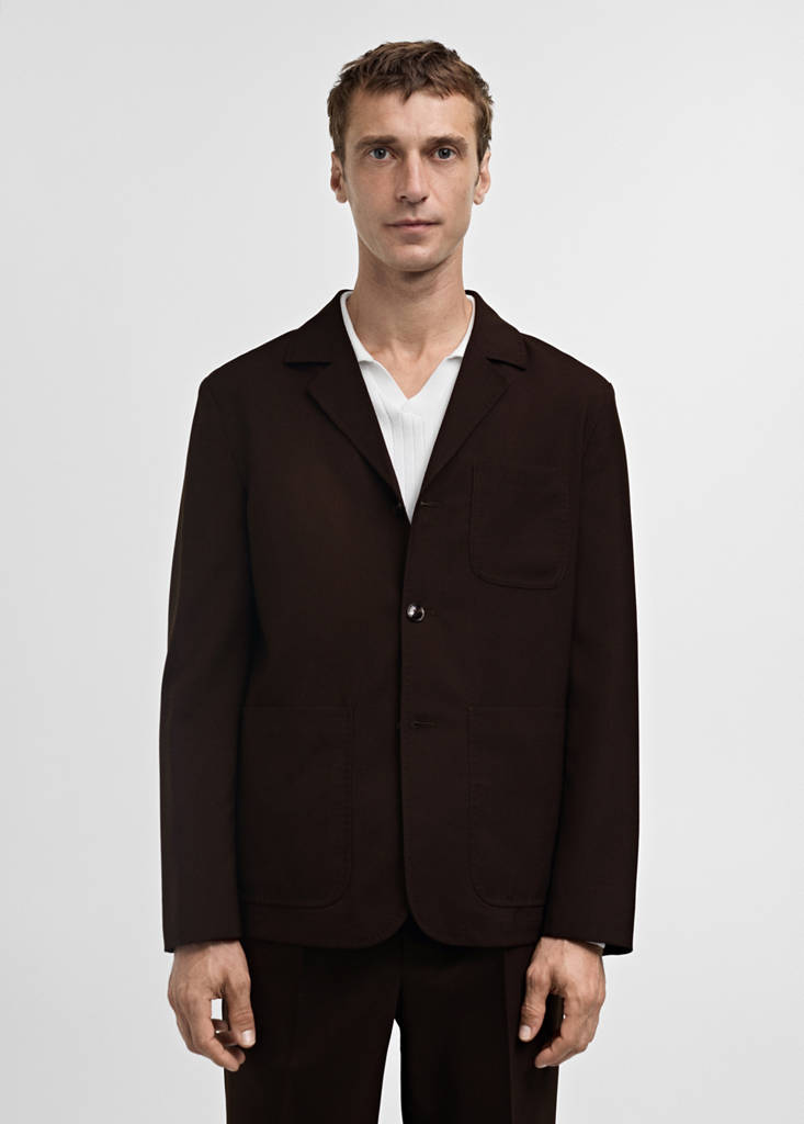 Poche plaquée sur la poitrine. Fermeture à boutons. Deux poches plaquées à l'avant. Slim fit. Ourlet arrondi. 100% laine. Col à revers crantés. Poignets boutonnés. Doublure