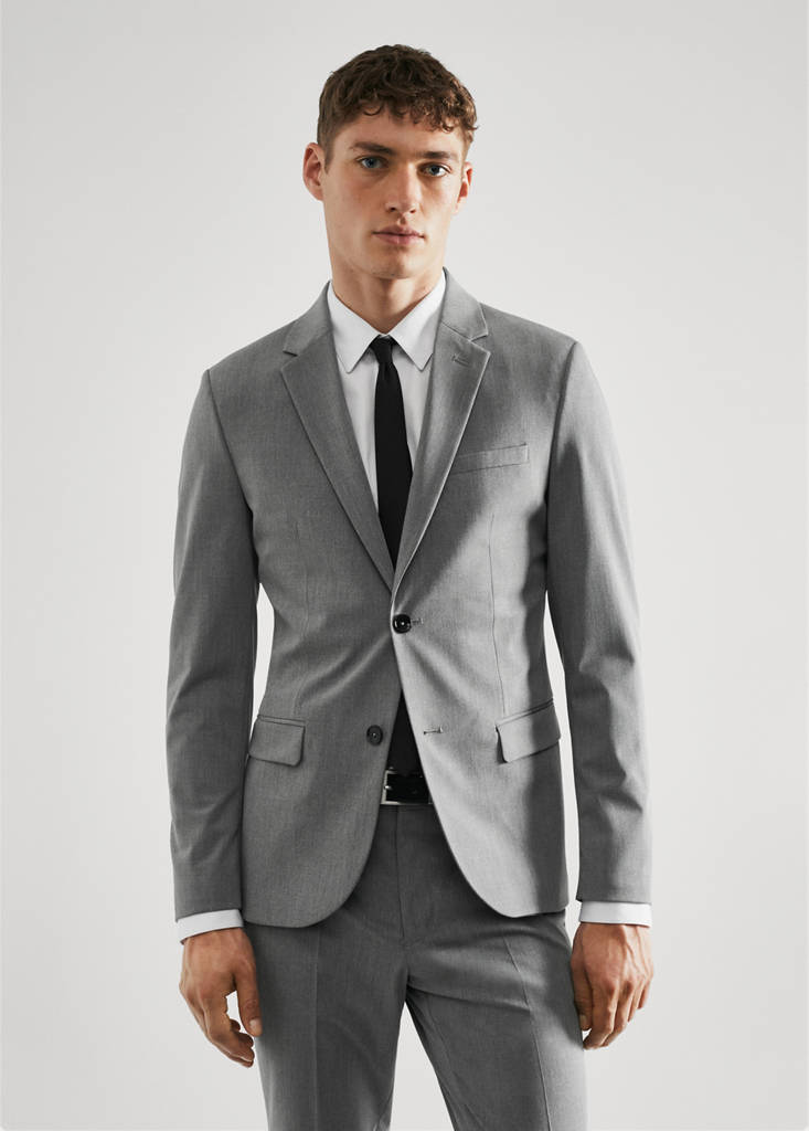 Super slim-fit. Confectionné en polyester recyclé, une fibre résistante, respirante et facile d'entretien qui permet un grand confort d’utilisation. Comfort Stretch : Tissu élastique pour plus de confort. Revers à encoche. Fermeture à boutons. Poche passepoilée sur la poitrine. Deux poches à rabat sur le devant. Double ouverture au dos. Doublure. Poches intérieures. Collection tailleur. Manches longues boutonnées. Confort : Ce vêtement offre une liberté de mouvement totale et retrouve sa forme initiale