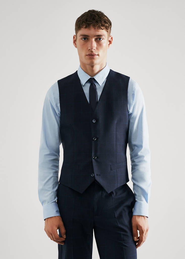 Super slim-fit. Confectionné en polyester recyclé, une fibre résistante, respirante et facile d'entretien qui permet un grand confort d’utilisation. Comfort Stretch : Tissu élastique pour plus de confort. Imprimé grands carreaux. Col en V. Sans manches. Boucle réglable dans le dos. Doublure. Poche intérieure. Collection tailleur. Deux poches passepoilées à l’avant. Confort : Ce vêtement offre une liberté de mouvement totale et retrouve sa forme initiale. Fermeture avant avec boutons