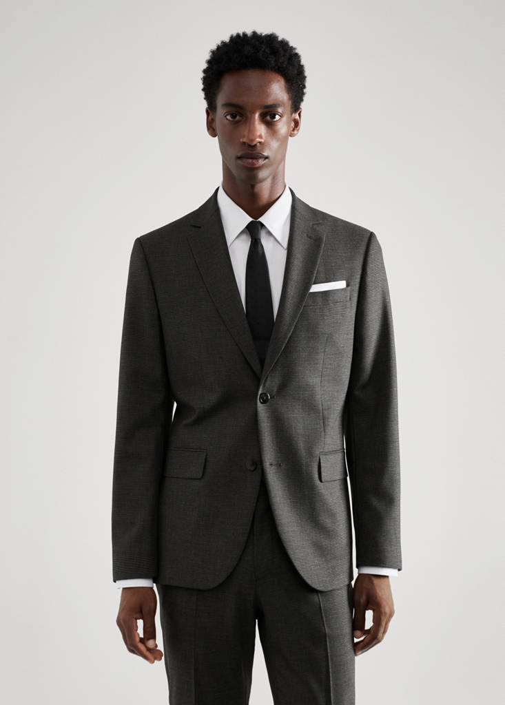 Slim fit. Imprimé micro pied-de-poule. Revers à encoche. Poche passepoilée sur la poitrine. Deux poches à rabat sur le devant. Deux poches intérieures. Double ouverture au dos. Fermeture à boutons. Doublure. Collection tailleur. Tissu Bi-stretch : sa flexibilité dans toutes les directions apporte souplesse et confort. Wrinkle free : tissu infroissable. Thermorégulateur : Ce tissu offre une respirabilité optimale pour maintenir votre température stable. Manches longues boutonnées
