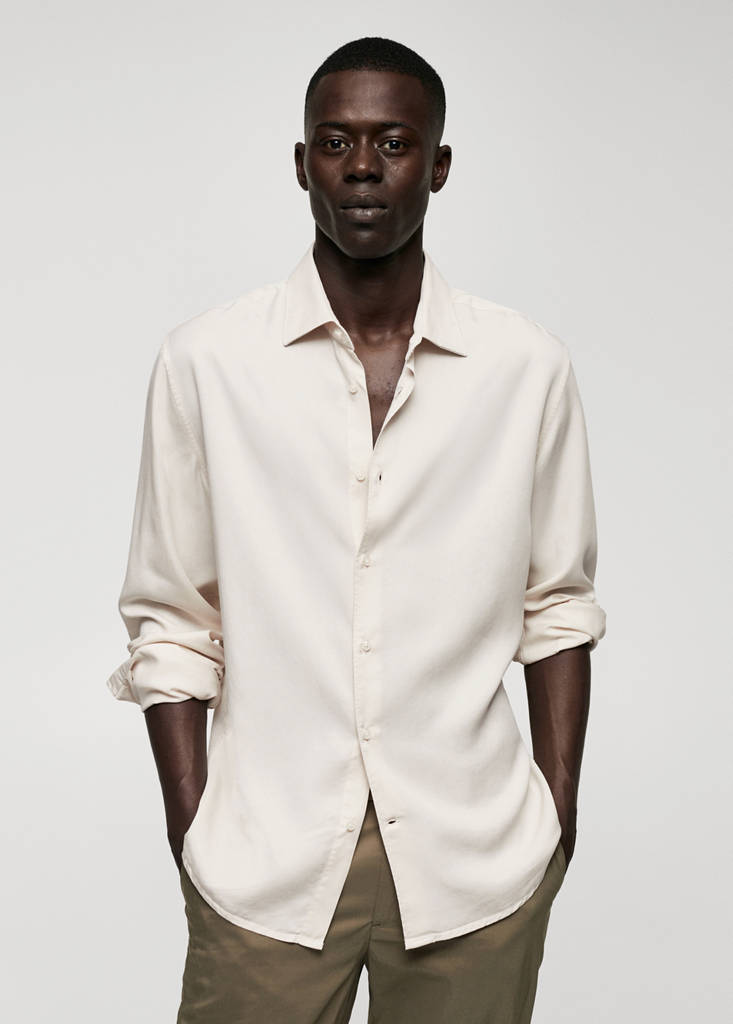 Tissu en lyocell. Le tissu Lyocell offre un grand confort et une grande fluidité. Slim fit. Col chemise. Manches longues et poignets boutonnés. Ourlet arrondi. Fermeture avant avec boutons