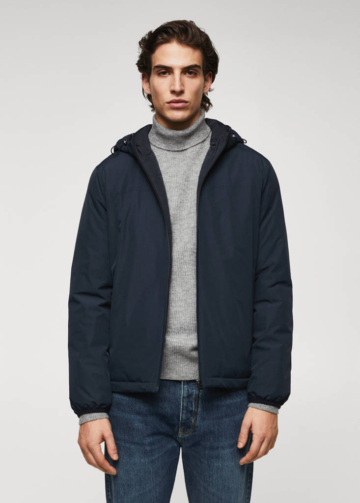 Coupe courte. Hydrofuge : La finition résistante de ce vêtement protège contre les pluies légères, repoussant le contact avec l'eau et les gouttes de pluie. Rembourrage en polyester recyclé. Capuche. Manches longues. Deux poches zippées sur les côtés. Fermeture Éclair. Doublure. Le mannequin mesure 185 cm et porte une taille M