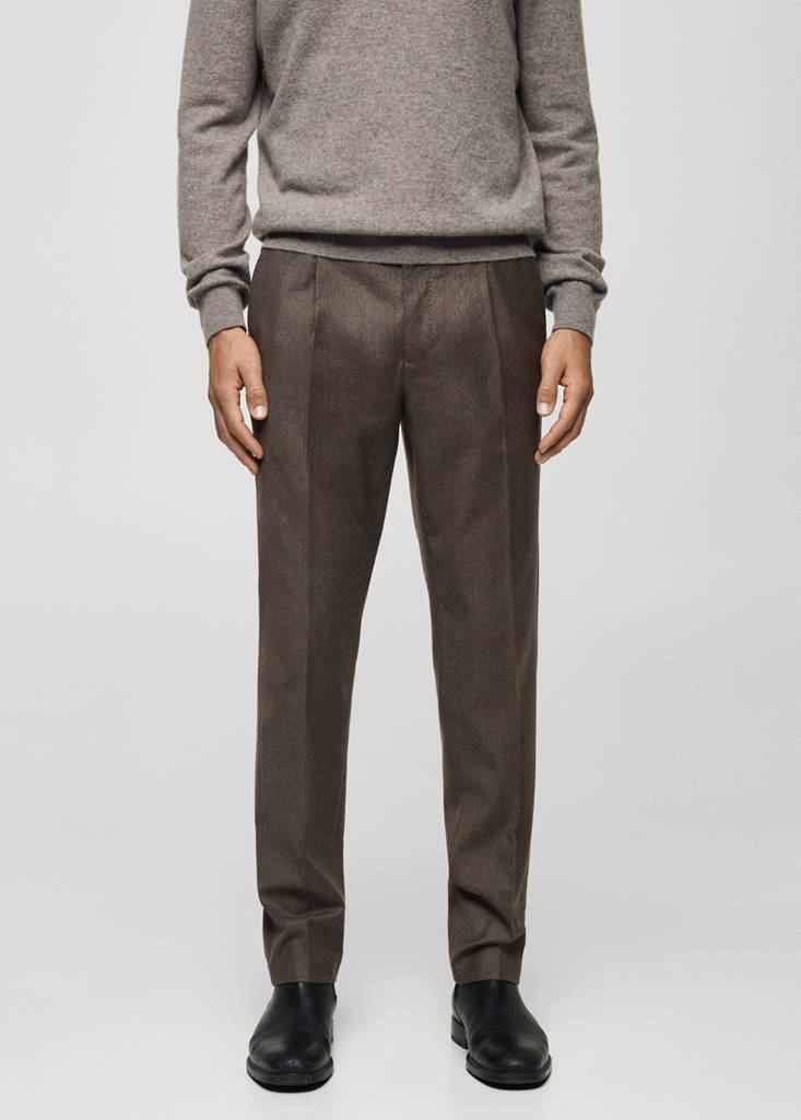 Collection Selection. Tissu 100 % laine vierge italienne de la société NEROSSI BY MARZOTTO. Fabriqué au Portugal. Pinces sur le devant. Détail de pli marqué à l'avant et à l'arrière. Fermeture avant à bouton, agrafe et fermeture Éclair. Boutons à l'intérieur de la taille pour les bretelles. Passants pour ceinture. Deux poches latérales passepoilées. Deux poches passepoilées avec bouton à l'arrière