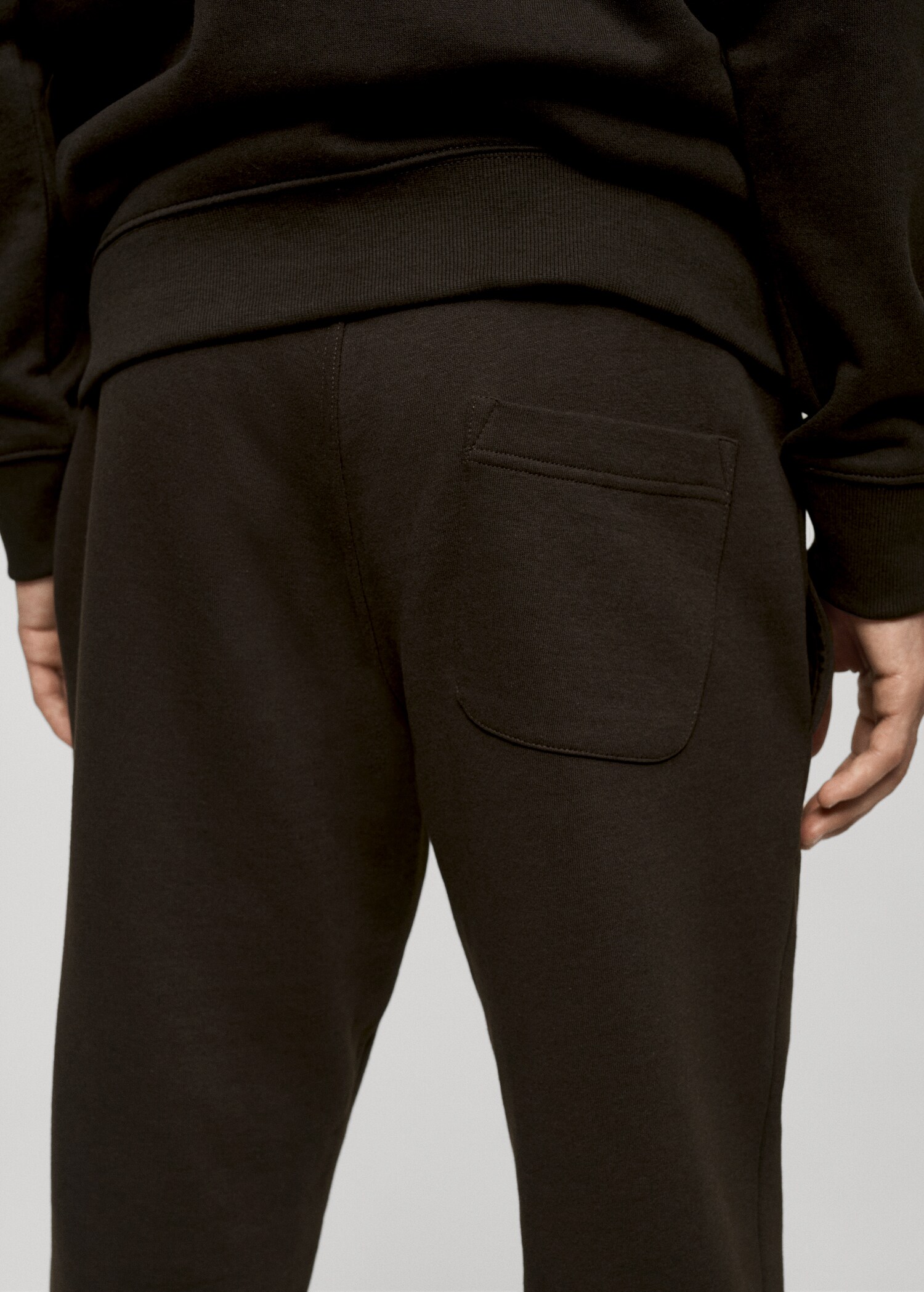 Coupe ajustée. Coupe jogging. Tissu mélange de coton. Taille élastique avec cordon de serrage ajustable. Deux poches latérales. Poche plaquée à l'arrière. Bas élastiqué. Le modèle mesure 190 cm et porte une taille M.