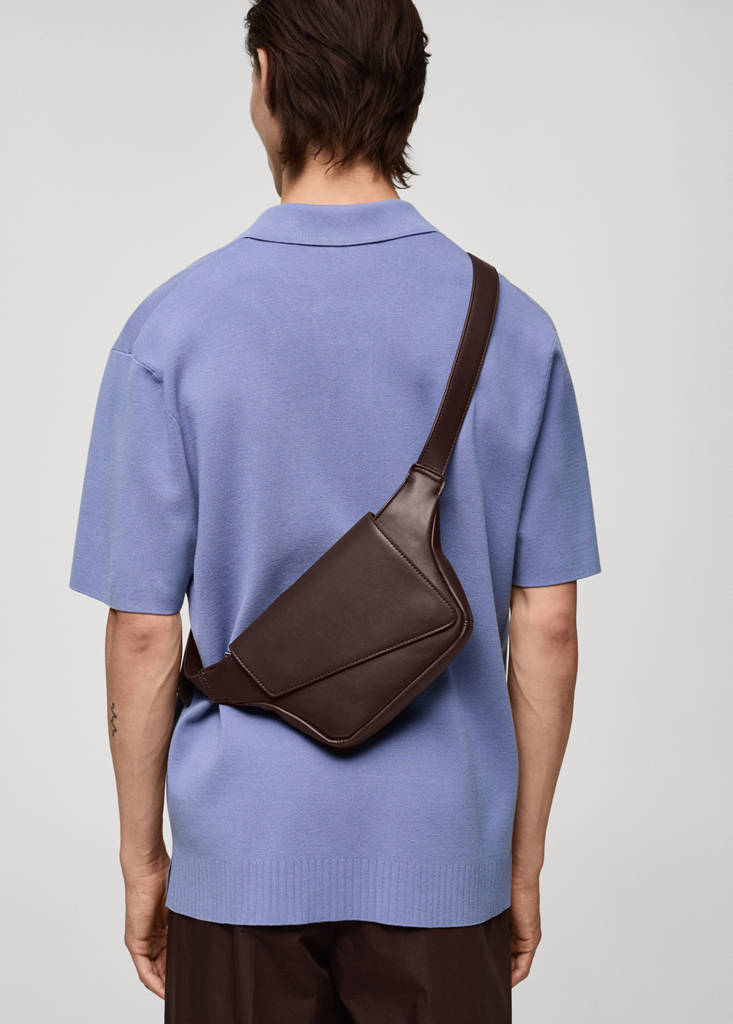 Effet cuir. Forme sac banane. Anse longue réglable avec fermeture à boucle. Compartiment principal zippé