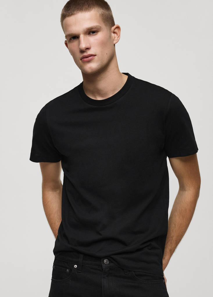 Slim fit. 100% coton. Manche courte. Col rond. Les couleurs verte et camel sont des exclusivités en ligne. Les couleurs orange et bleu ciel sont des exclusivités en ligne. Tissu 100% coton. Tissu en mélange de coton. Manche courte. Ourlet droit. Longueur standard. Silhouette Slim. Col à revers Rond. Longueur de manche courte.