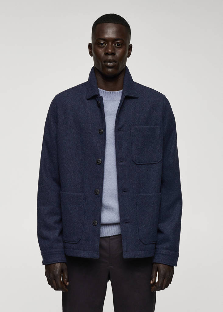 Coupe regular. Tissu de laine mélangé. Poche plaquée sur la poitrine. Deux poches plaquées à l'avant. Manches longues et poignets boutonnés. Ourlet droit. Fermeture avant avec boutons. Col classique
