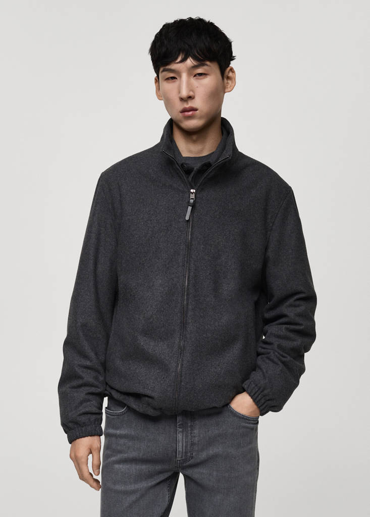 ESSENTIALS: Conçus pour durer. Tissu en laine. Col cheminée. Fermeture Éclair à l’avant. Deux poches à bouton-pression sur les côtés. Bas ajustable. Doublure. Manches longues avec poignets élastiques et fronces