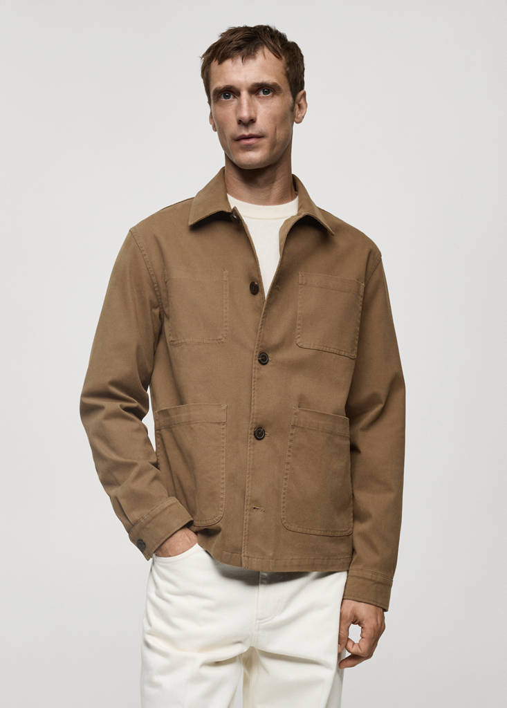 Fermeture à boutons. Col chemise. Poignets boutonnés. Ourlet droit. Coupe droite. Manche longue. Quatre poches plaquées à l’avant. Tissu twill de coton