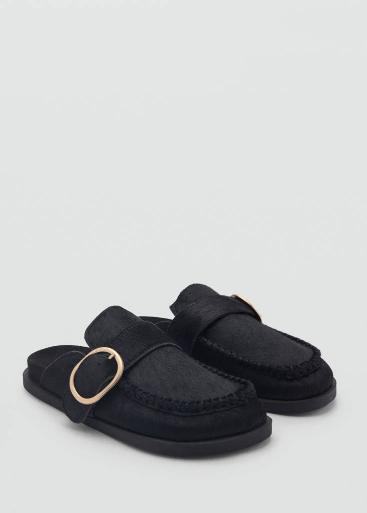 100 % cuir bovin. Flat. Imitation fourrure. Bout rond. Boucle ajustable