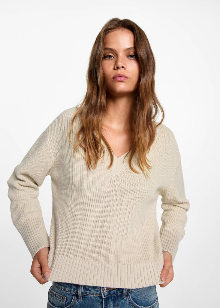100% coton. Tissu en coton mélangé. Coupe droite. Col en V. Manche longue