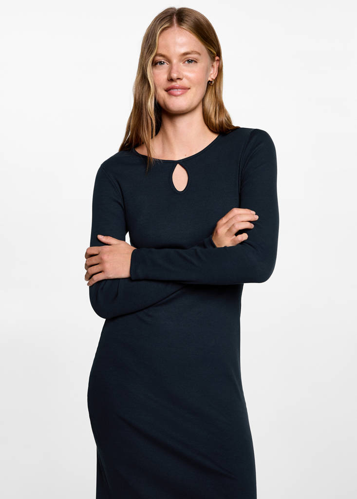 Tissu en coton mélangé. Coupe droite. Col rond. Décolleté en forme de goutte à l’arrière. Manche longue. Ouverture à l'ourlet. Sans fermeture