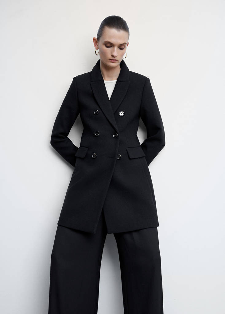 Cloth. Heavy structure. Lapels. Slim fit. Lining only. Straight design. Long sleeves. Lapel with notch. Front closure. Two pockets with flaps on the front. Inner lining. Button fastening at the front. Available Plus. Recycled wool mix fabric. Available in plain and patterned. Lapel-collar V-neck collar. Wrap design. Medium design. Long Sleeve Length. Slim Silhouette. Front Closure Location. Material Cloth. Lining Filling Only Lining. Heavy Flat Structure. Lapel Collar. Medium Length. No Print. No Fantasy