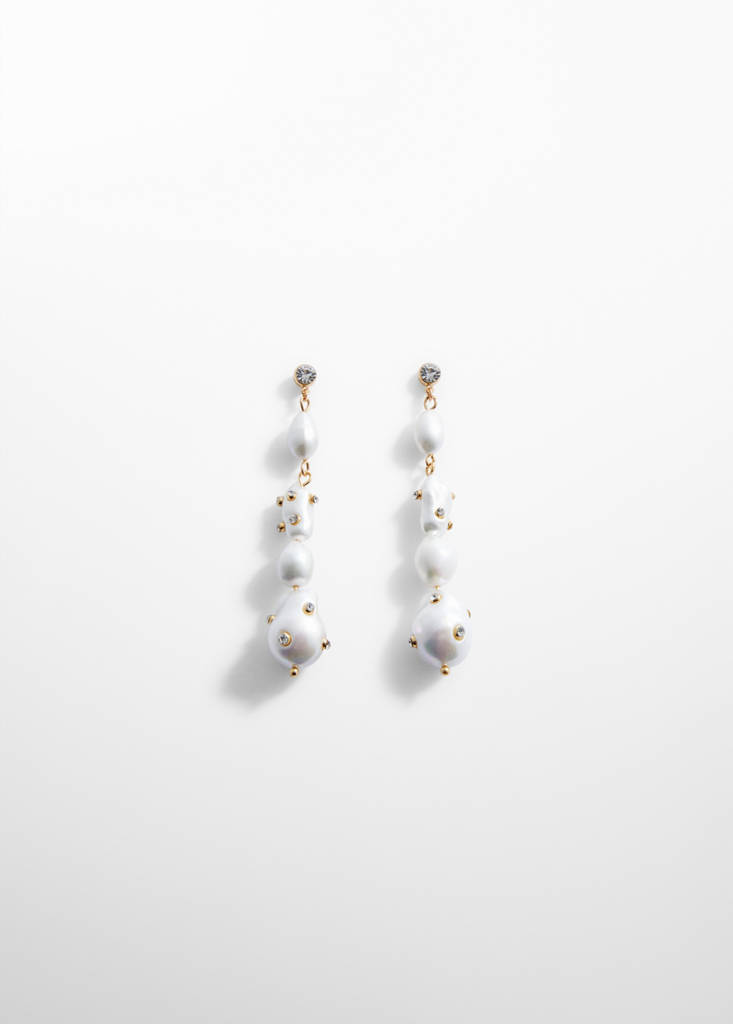 Long design. Pearl-effect details. Rhinestone detail. Metal snap closure