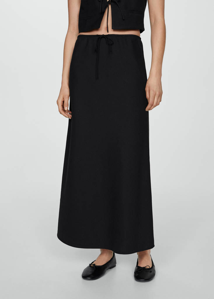 Long skirt with adjustable bow