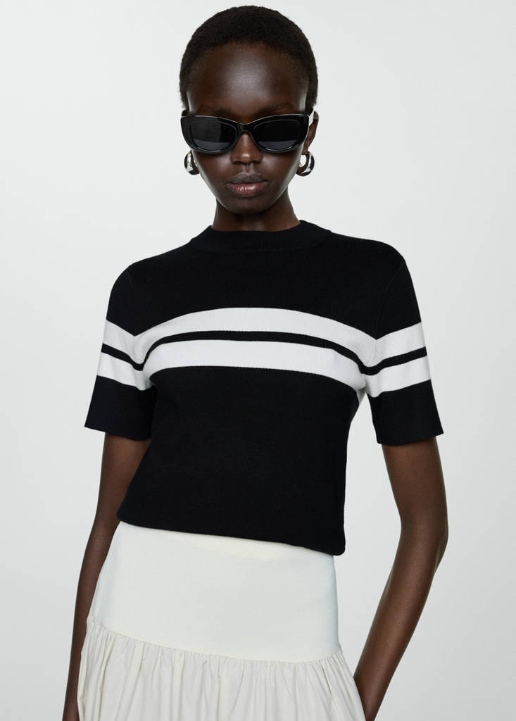Knit striped sweaterCurrent price [NGN 49,900.00 ]NGN 49,900.00Select a colourBlackSelect your sizeXXSXSSMLXLXXLSize guideAdd to WishlistSee lookFree delivery to storeSee availability in storeDescriptionFine-knit fabric. Straight design. Round neck. Short sleeves. Striped design.See detailsShare