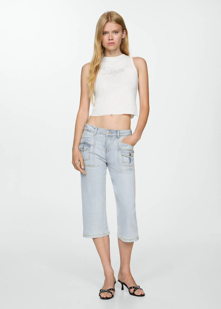 Round neck. Sleeveless. Rhinestone detail. 100% cotton fabric. Printed design. Fitted design