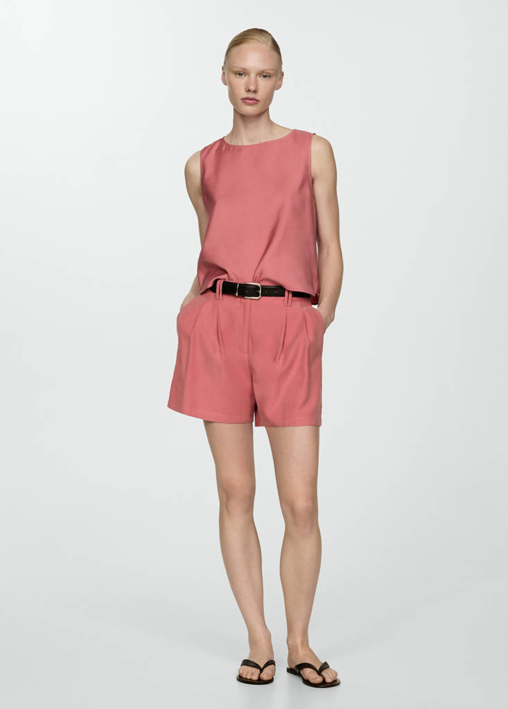 Pleated mid-rise shortsCurrent price [NGN 59,900.00 ]NGN 59,900.00Select a colourPastel PinkThe model is wearing size S and is 179cm tall.Select your sizeXSSMLXLDimensionsAdd to WishlistSee lookFree delivery to storeFluid fabric. Straight design. Short design. Mid-rise. Belt loops. Two side pockets. Concealed button, hook and zip fastening. Dart detail. Total look. Welt pocket on the backDetails, composition and careStore availability