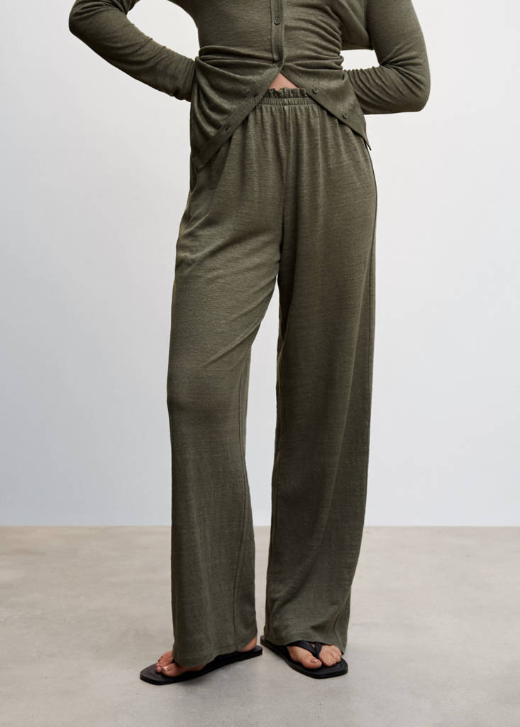 100% linen fabric. Fine knit fabric. Flowy fabric. Long design. Wide-leg design. Elasticated waist. Co-ord