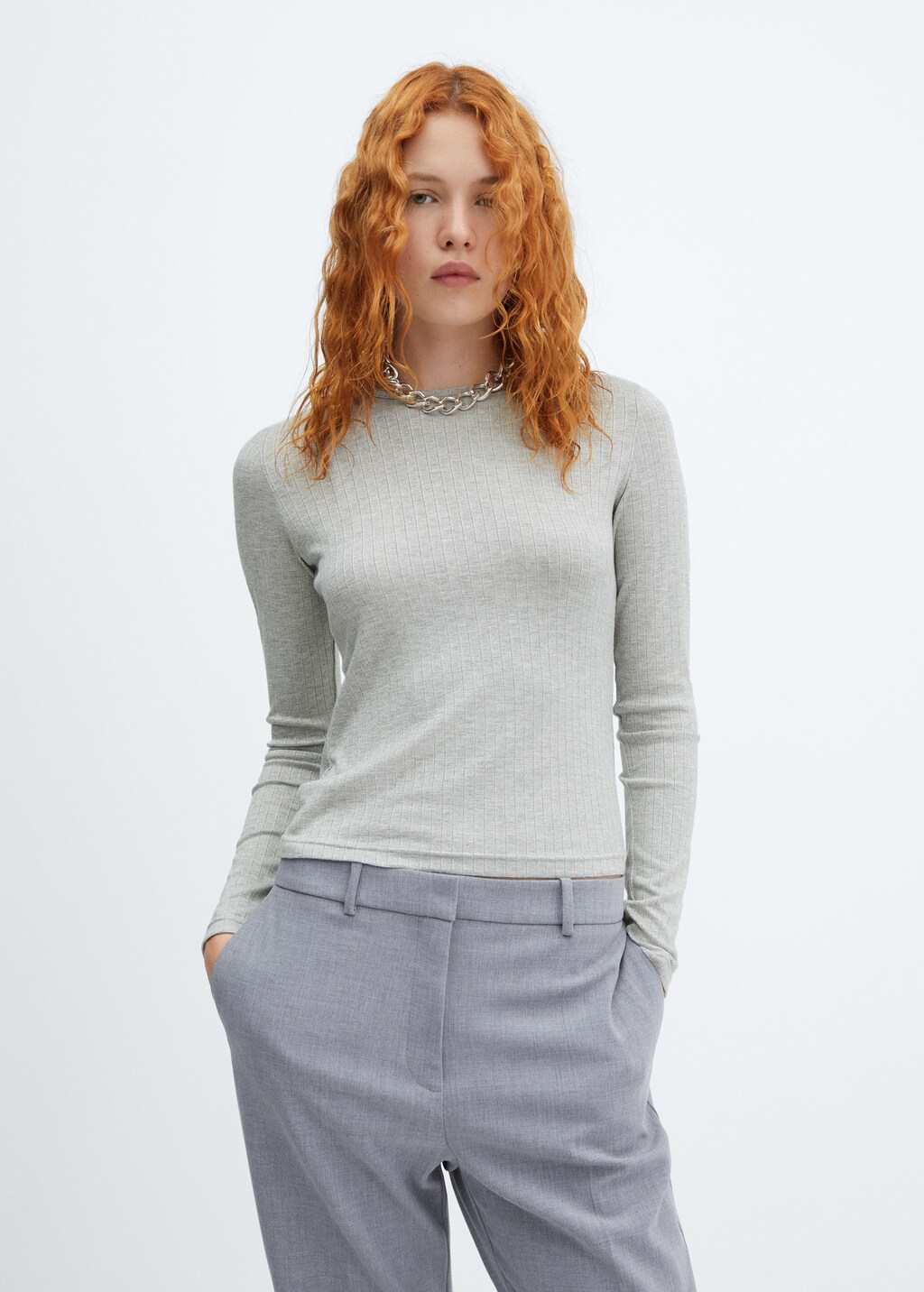 Punto de canalé. Diseño recto. Cuello redondo. Manga larga. Looks de oficina.
