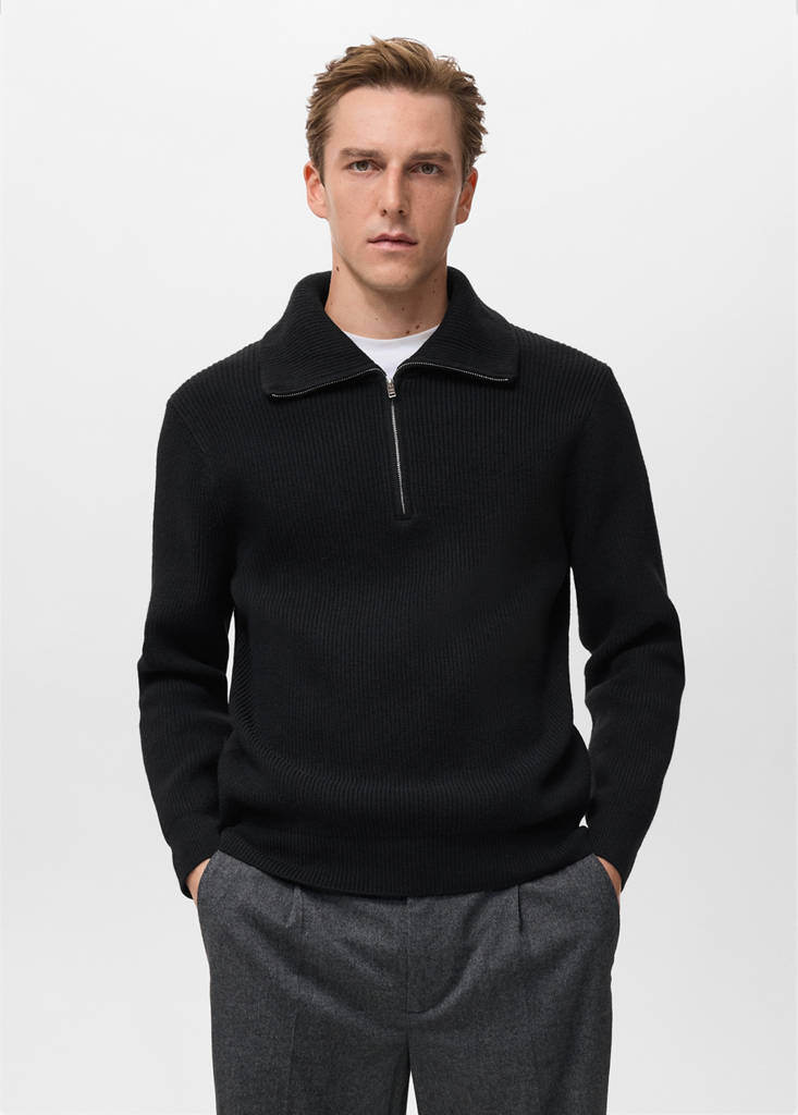 Jersey punto cuello cremalleraPrecio actual [US$ 99.99 ]US$ 99.99Selecciona un colorNegroEl modelo lleva la talla M y mide 185cm.Selecciona tu tallaSNo disponible ¡Lo quiero!MNo disponible ¡Lo quiero!LNo disponible ¡Lo quiero!XLNo disponible ¡Lo quiero!XXLNo disponible ¡Lo quiero!MedidasAvísameAñadir a FavoritosVer lookEnvío gratis a tiendaEl color negro es exclusivo online. Tejido de punto. Tejido con lana. Diseño de canalé. Silueta recta. Cuello vuelto con cremallera. Puños y bajo con terminaciones en canaléDetalles, composición y cuidadosDisponibilidad en tienda