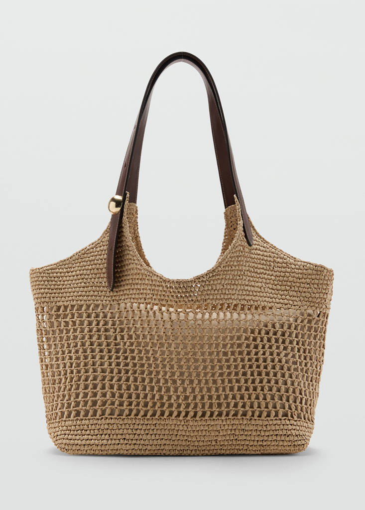 Diseño tote. Tamaño grande. Tejido de fibra natural. Doble asa. Dos asas largas de hombro. Asa ajustable. Bolso pequeño interior de tela. Cierre de cremallera
