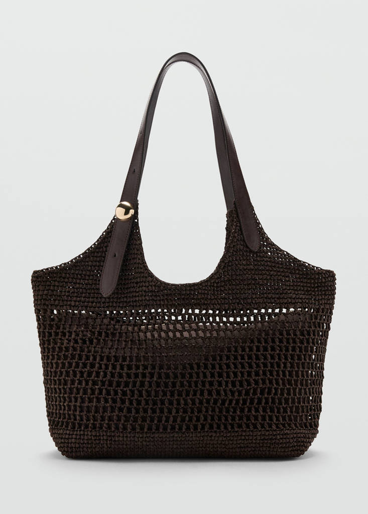 Diseño tote. Tamaño grande. Tejido de fibra natural. Doble asa. Dos asas largas de hombro. Asa ajustable. Bolso pequeño interior de tela. Cierre de cremallera