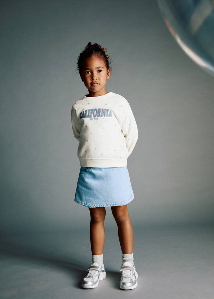 Cotton fabric. Straight design. Printed design. Round neck. Long sleeves. Ribbed collar, cuffs and hem. Heart print. Letter print