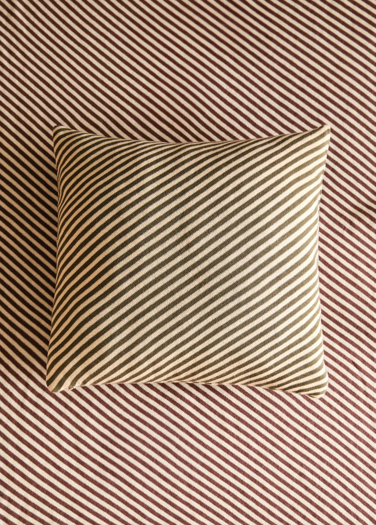 100% Cotton. Size: 40x40 cm. Two-tone stripe design. Square design. Side zip closure. No Filling. Combine with the matching blanket