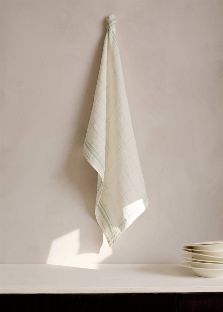 100% linen check-design tea towel